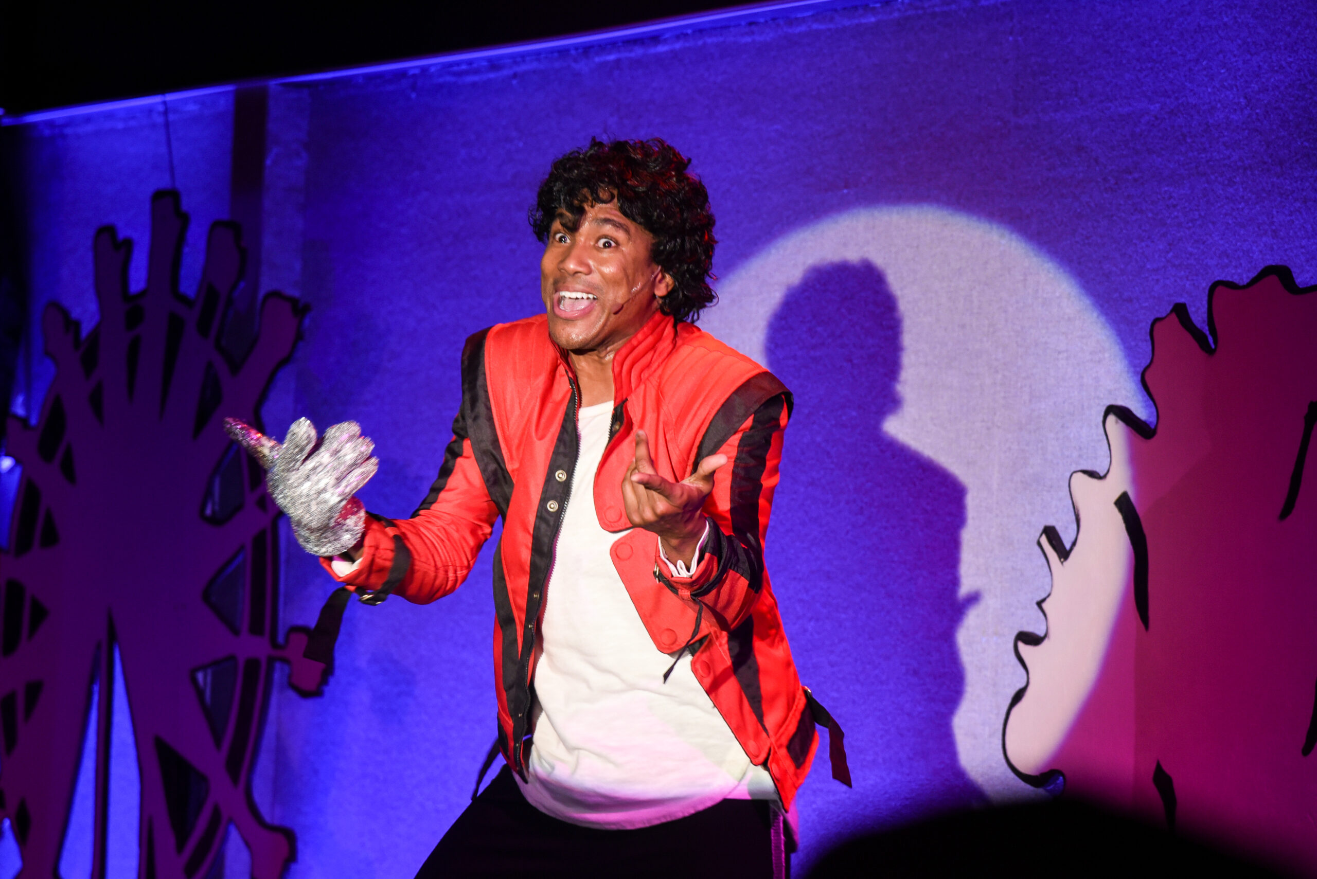 Justin Anthony Long as Donny Osmond and Eric B. Anthony as young Michael JacksonJerry Minor as Thrill-LhaEric B. Anthony as young Michael JacksonEric B. Anthony as young Michael JacksonPip Lilly as Ayl-Aa, Andrew Ableson as Vikh-Tah, Daniele Gaither as San-Dhaa and Daniel Mills as Run-SaaDaniel Mills as Run-Saa, Ogie Banks as Joe Jackson, Pip Lilly as Ayl-Aa and Andrew Ableson as Vikh-TahTrecey Dory as Jermaine Jackson and Suzanne Nichols as Katherine JacksonEric B. Anthony as Michael Jackson and Pip Lilly as Corey FeldmanEric B. Anthony as young Michael Jackson and Justin Anthony Long as Donny OsmondDaniele Gaither as Emmanuel Lewis, Eric B. Anthony as Michael Jackson and Pip Lilly as Corey FeldmanJerry Minor as Thrill-Lha and Eric B. Anthony as young Michael JacksonEric B. AnthonyEric B. Anthony, Jerry MinorEric B. AnthonyEric B. Anthony